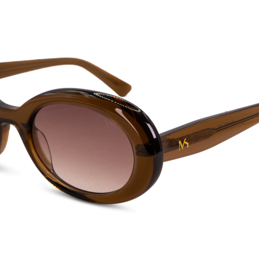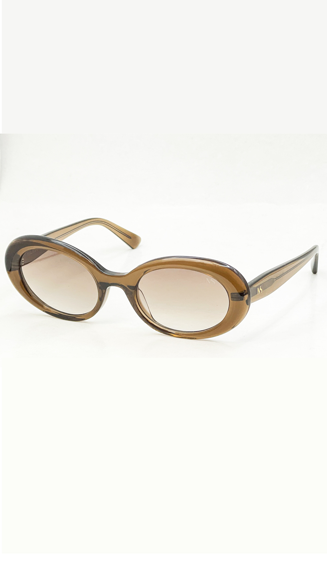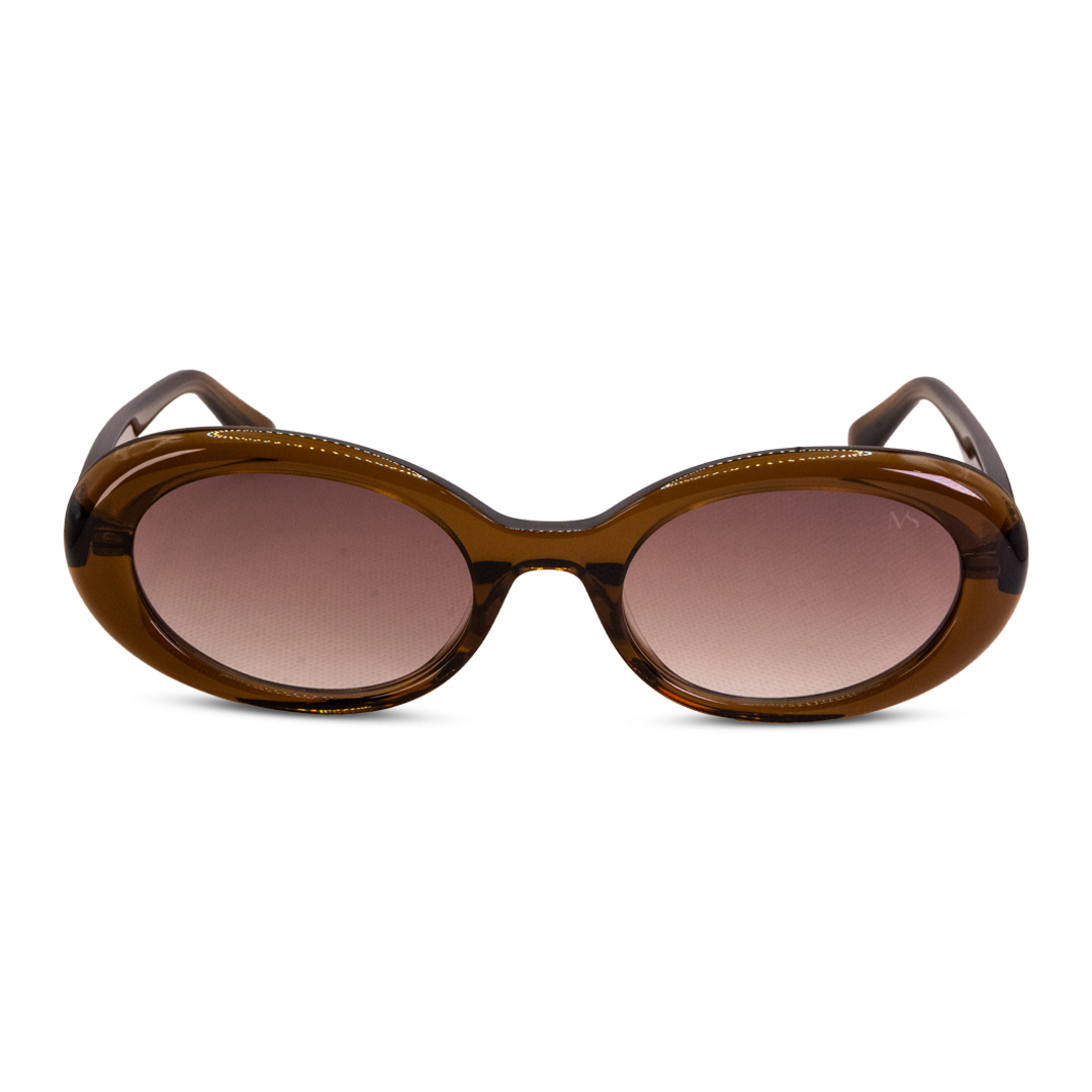 Monture disponible en noir et marron et verre de couleur marron uni.