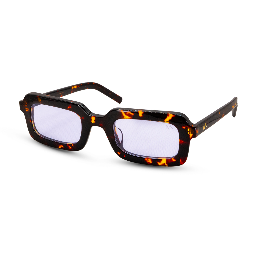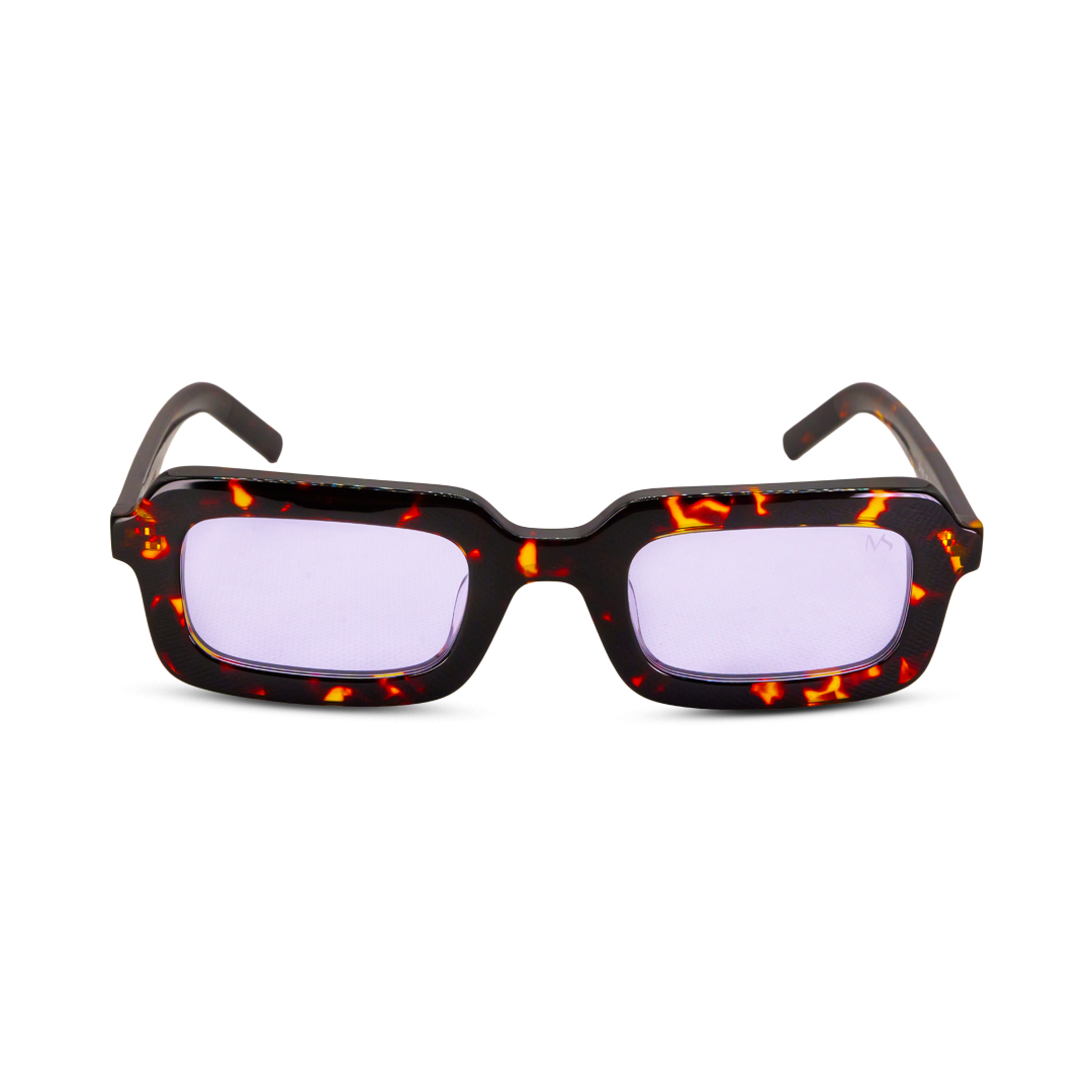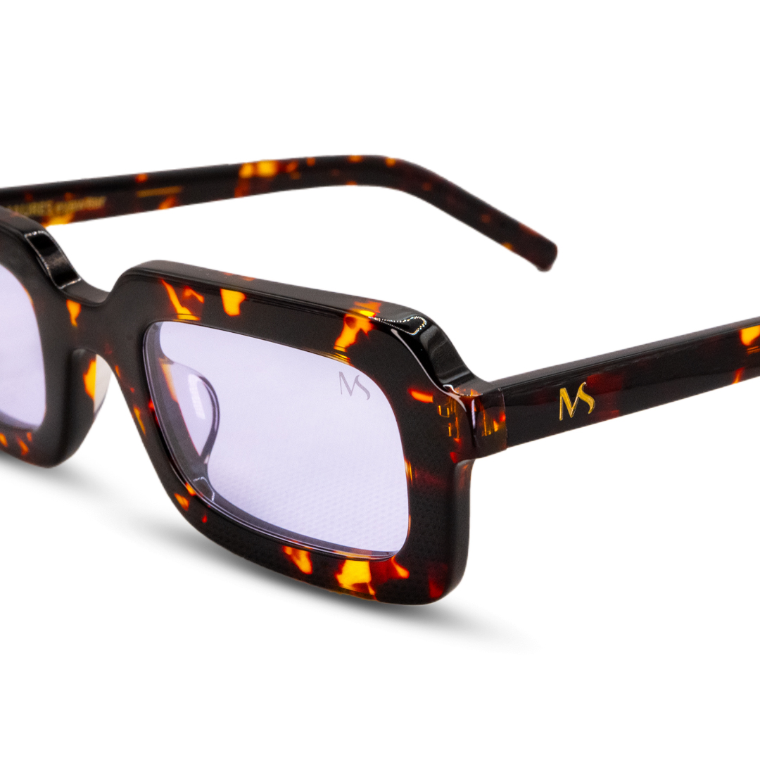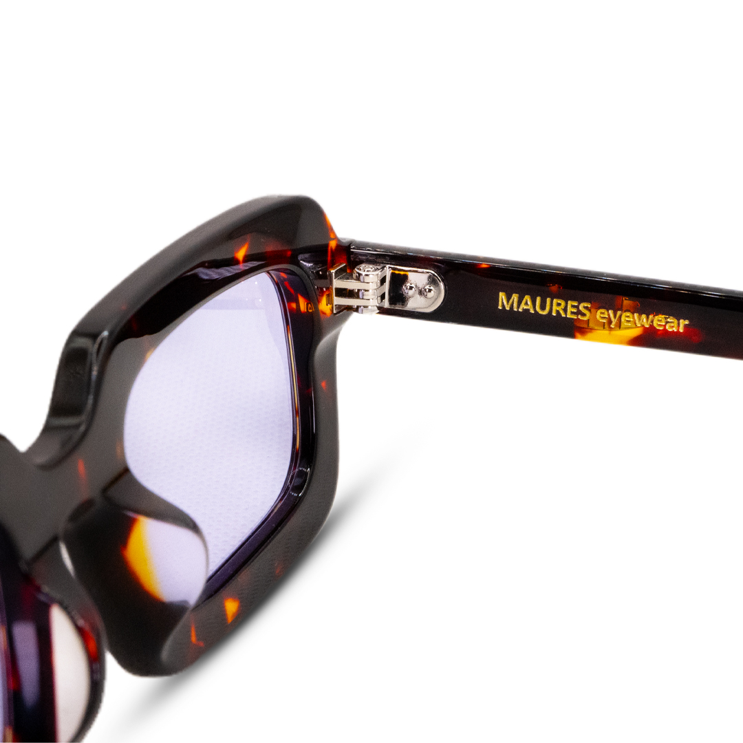 Monture disponible en noir et marron et verre de couleur noir et mauve clair uni.