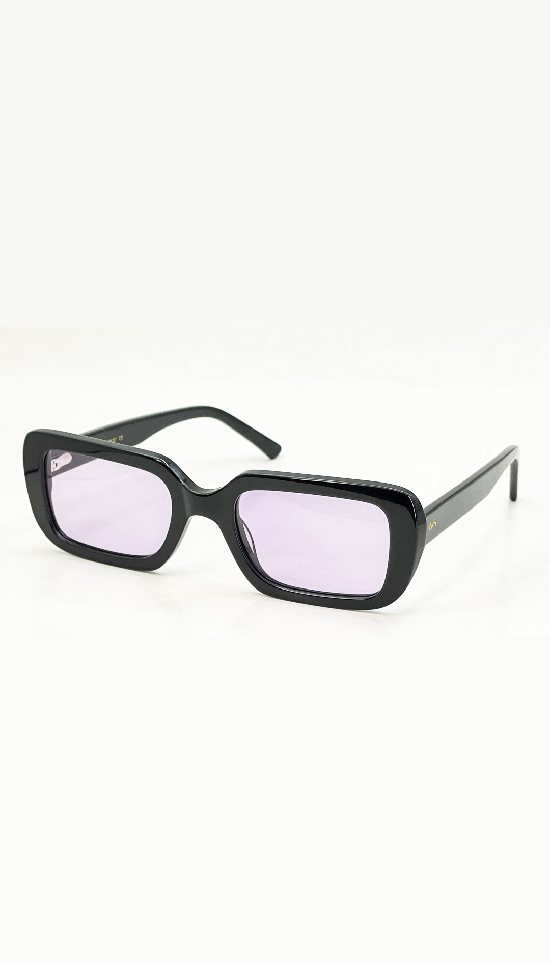 Monture disponible en noir avec verres rose unis clair.